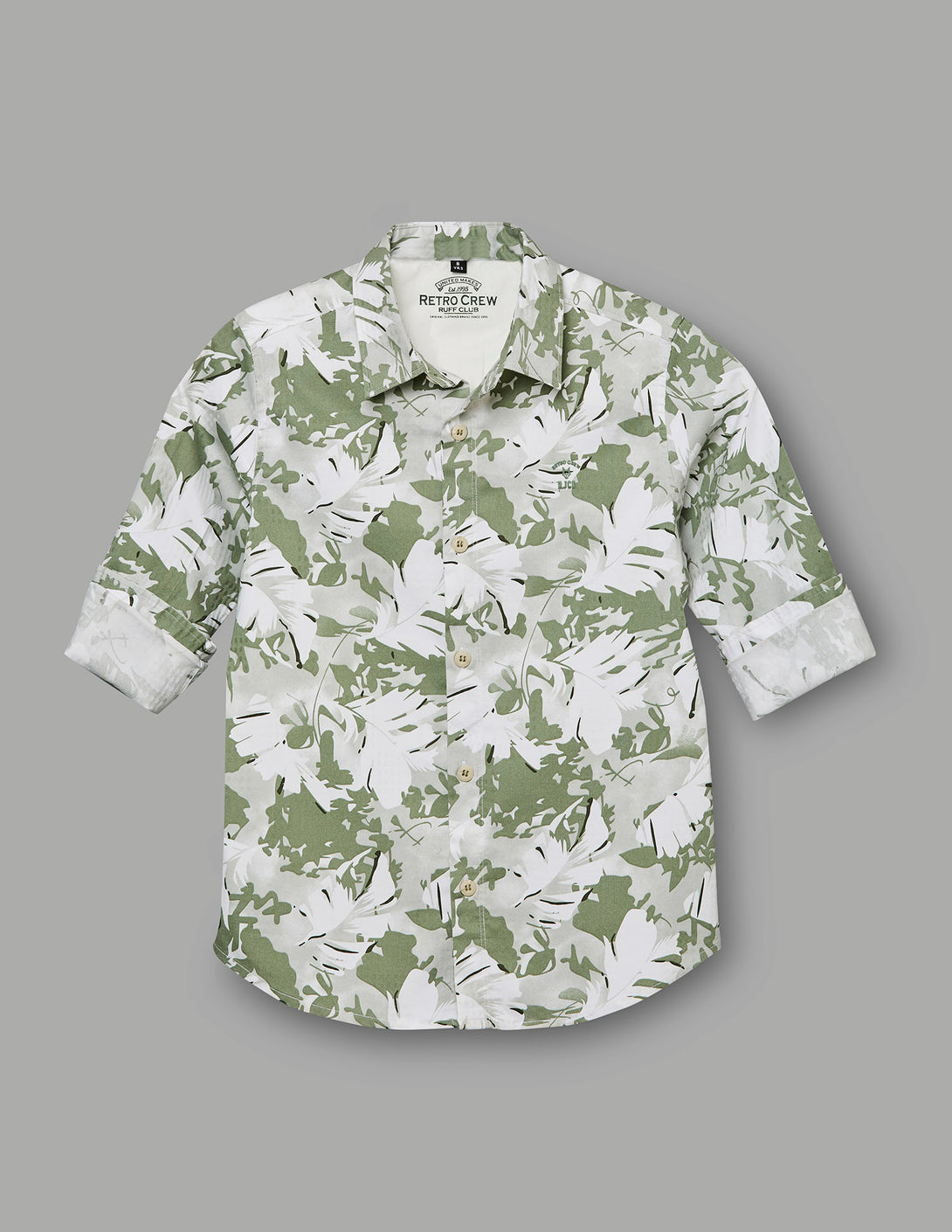 Tropical-inspired green leaf print shirt instantly gives any outfit a fresh, vacation-ready look with its vibrant pattern and comfortable cotton fabric. Featuring easy-to-roll-up sleeves and a classic button-down front, this versatile piece is perfect for summer parties and casual weekend fun.