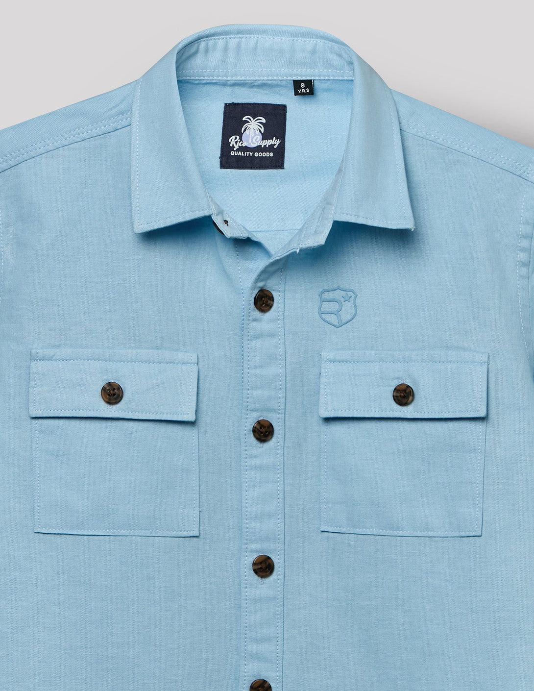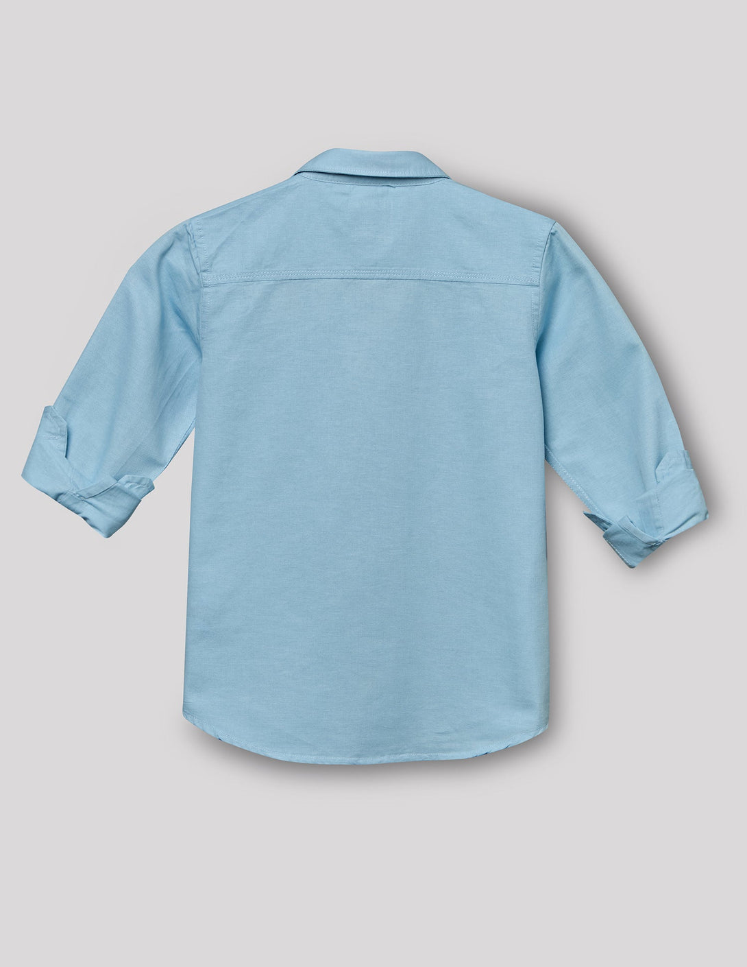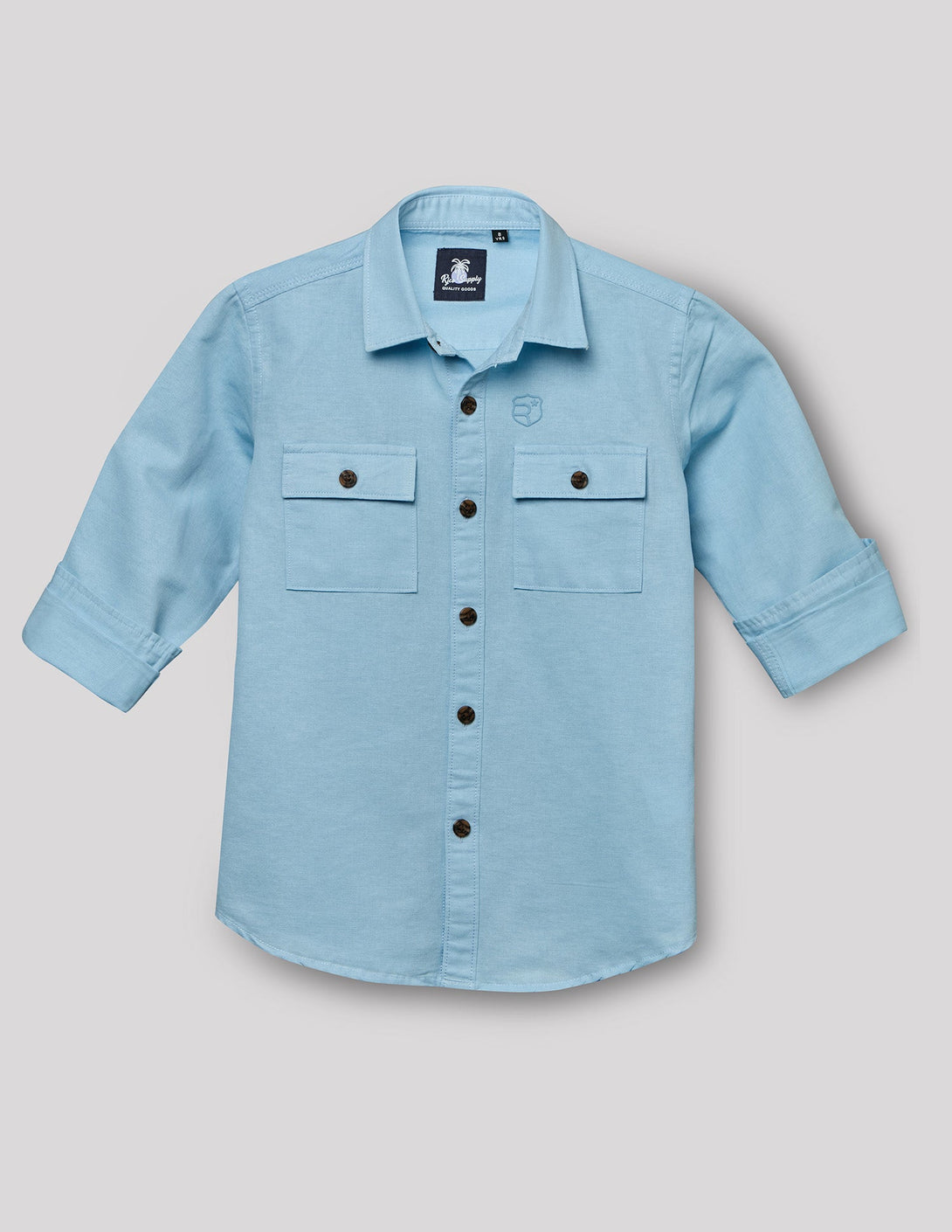 This sky blue casual shirt is the perfect blend of smart and practical. It features a textured fabric, two buttoned chest pockets, and roll-up sleeves, making it a comfortable and stylish choice for any occasion.
